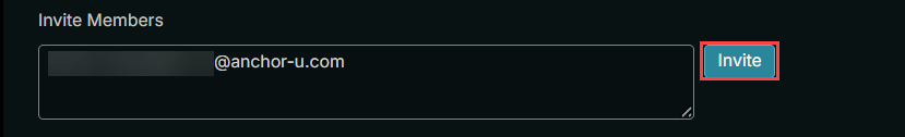 - 「Members」ページ内の「Invite Members」に、招待するユーザーのメールアドレスを入力し、「Invite」をクリックします。