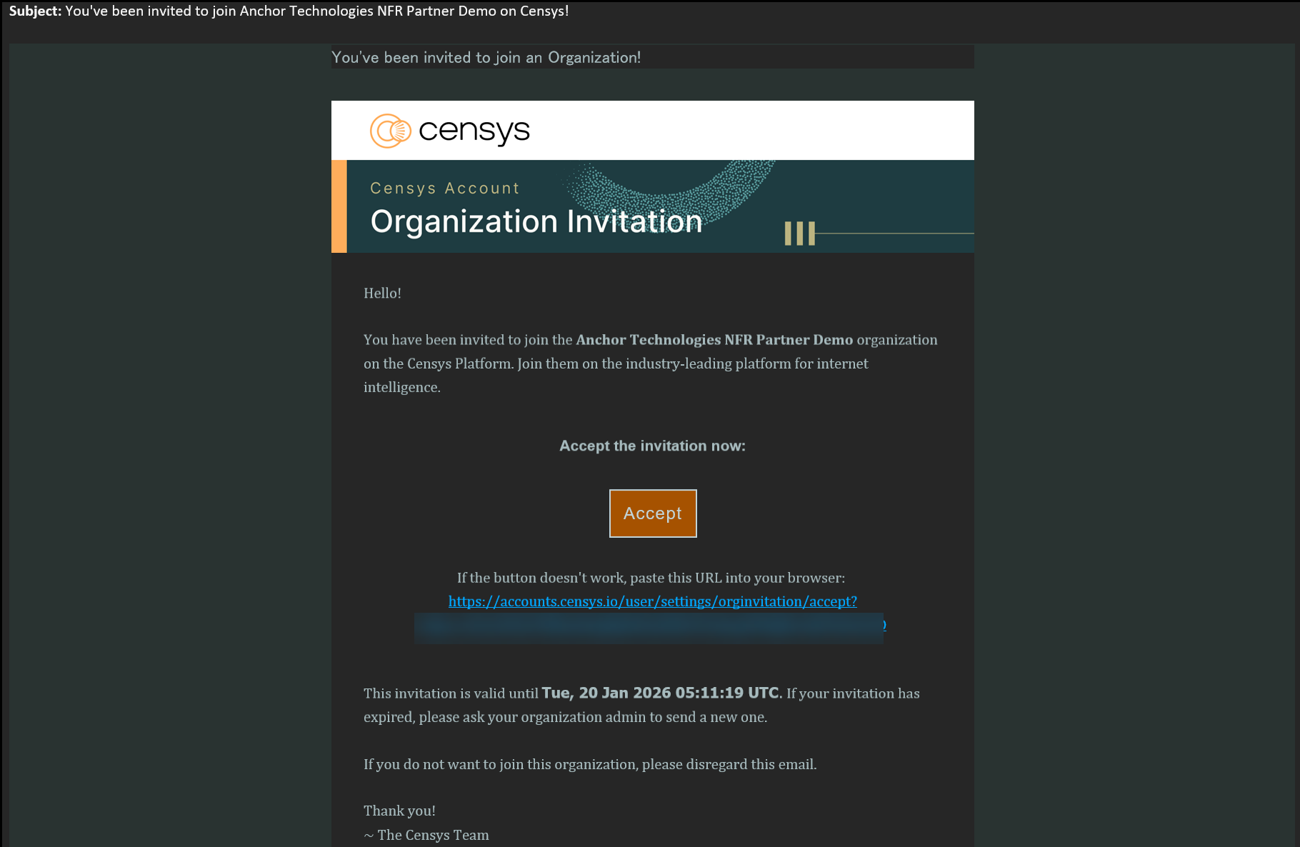 - 招待されたユーザーに、組織への参加用リンクが記載された招待メールが送信されます。