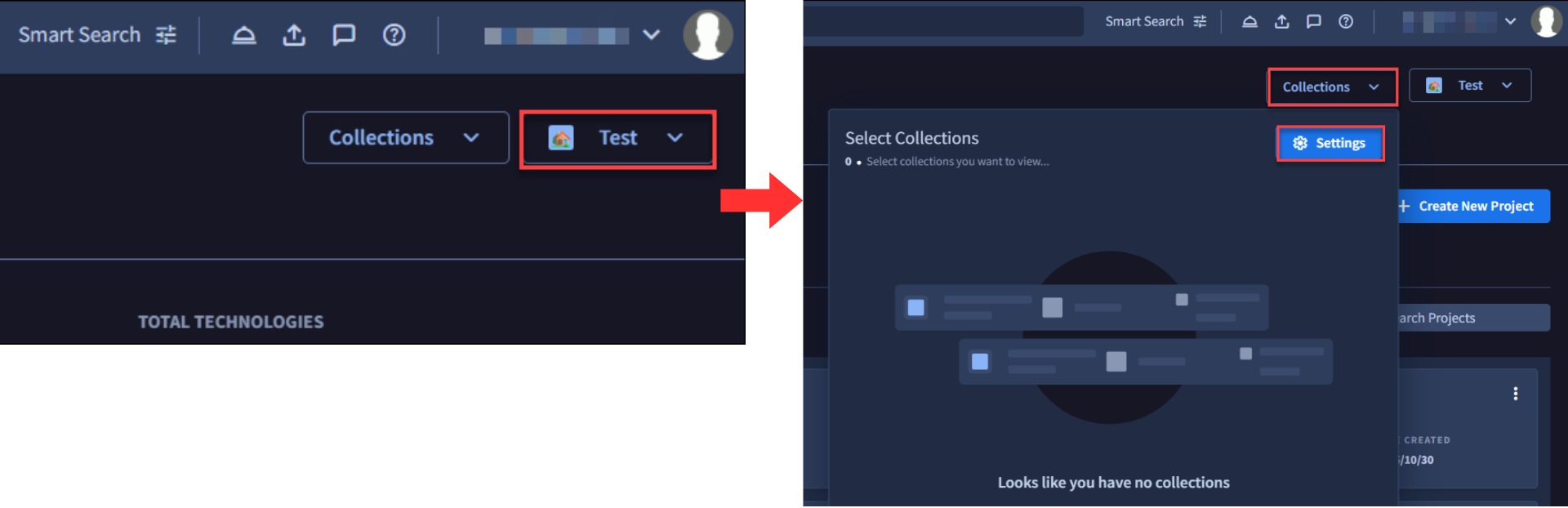 - 作成したプロジェクト上であることを確認し、「Collections」を選択し、「Settings」をクリックします。