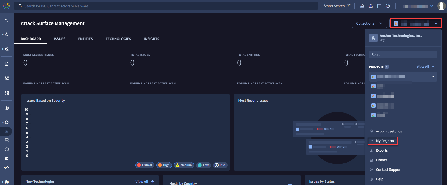 - 右上に表示されているプロジェクトをクリックし、「My projects」を選択します。