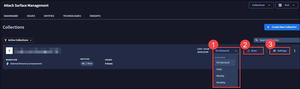 ①スキャンの実行頻度は、「Daily」「Weekly」「Monthly」「On Demand」から選択できます。