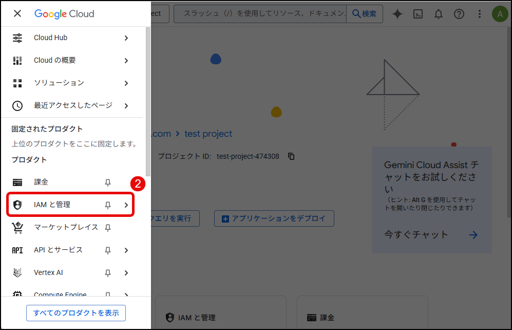 まず、IAMの管理ページへアクセスします。