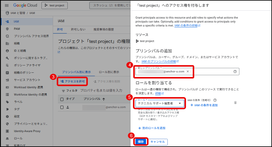 以下のキャプチャの手順にて、今後GTI の問い合わせを行う担当者のアカウントに、問合せを行う(サポートチケットを作成する)ことができるロールを割り当てます。