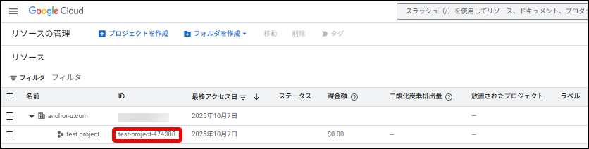 手順1:Google Cloud の組織リソースの作成状況の確認