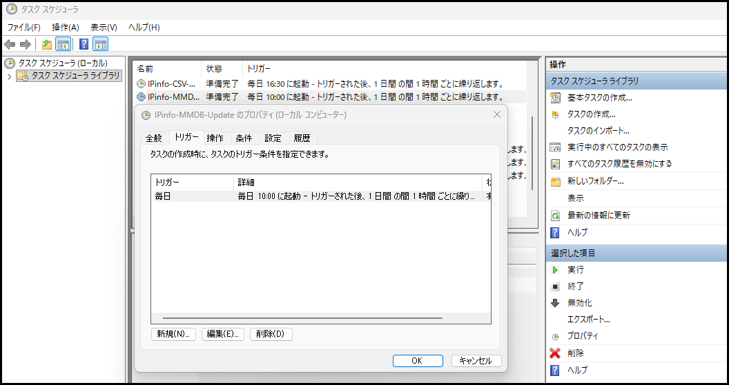 -ExecutionPolicy Bypass -File "C:\Users\ユーザー名\IPinfo\Update-IPinfo-mmdb.ps1"
