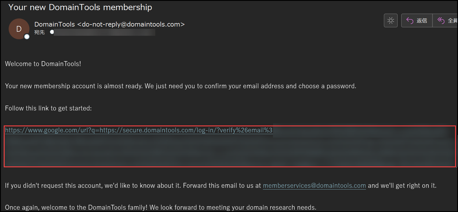 (例)フィッシングが疑われるドメインを起点に調査を行います。