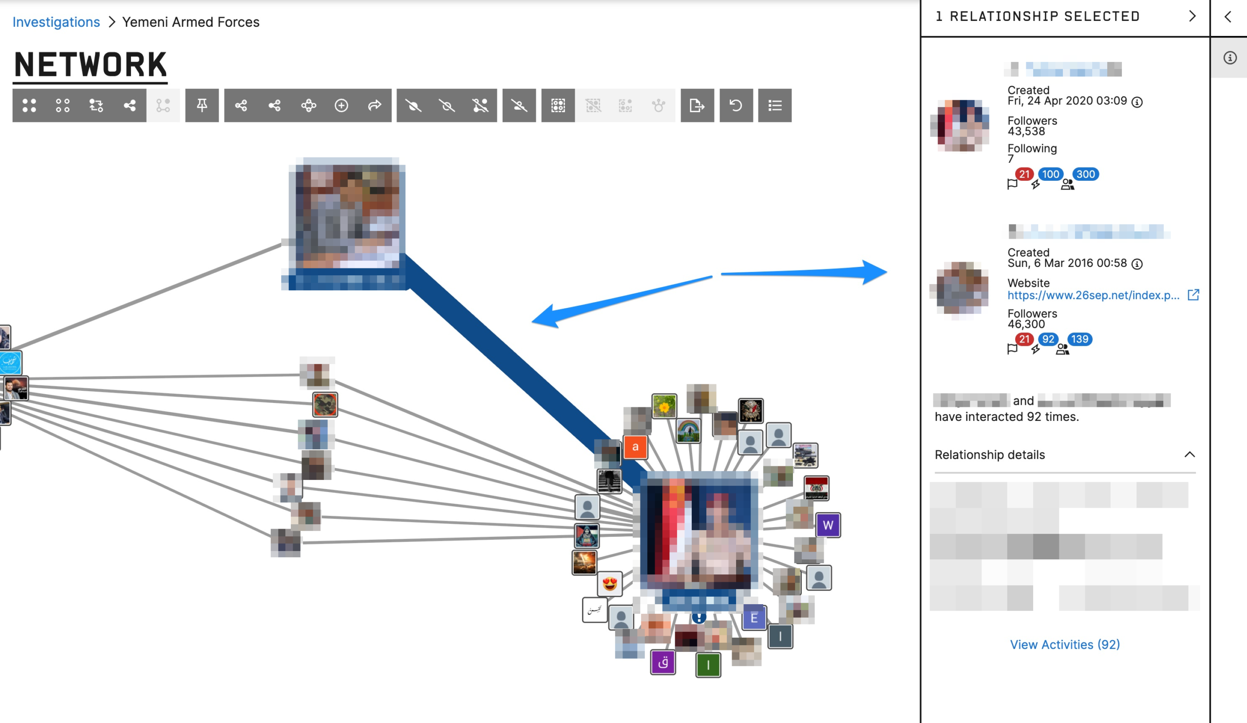 SNSやフォーラム、ニュースサイトなどインターネット上の公開情報を横断的に検索・分析し、人物・組織・活動の関係性やネットワークを可視化する調査分析ツールです。オンライン上の情報探索やOSINT調査を支援します。